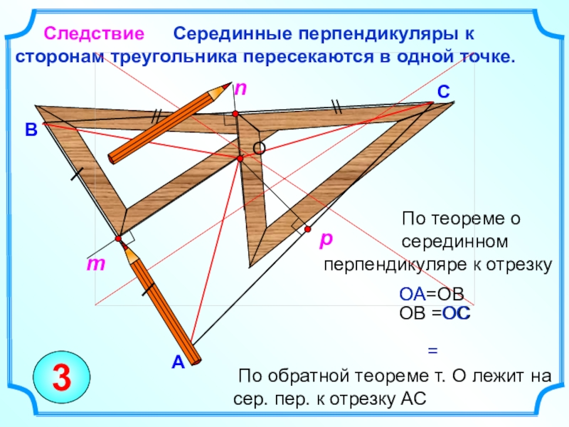 По теореме о серединных перпендикулярах: серединные перпендикуляры к сторонам треугольника пересекаются в одной точке.