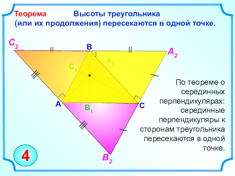 Серединные перпендикуляры к сторонам треугольника пересекаются в одной точке.