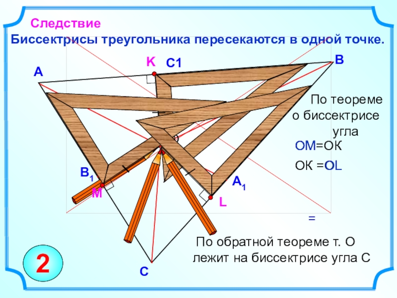По обратной теореме т. О лежит на биссектрисе угла С