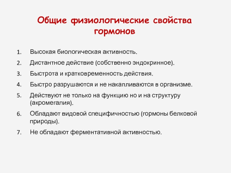 Слайд 6Общие физиологические свойства гормонов