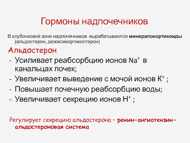 Регулирует секрецию альдостерона – ренин-ангиотензин-альдостероновая система
