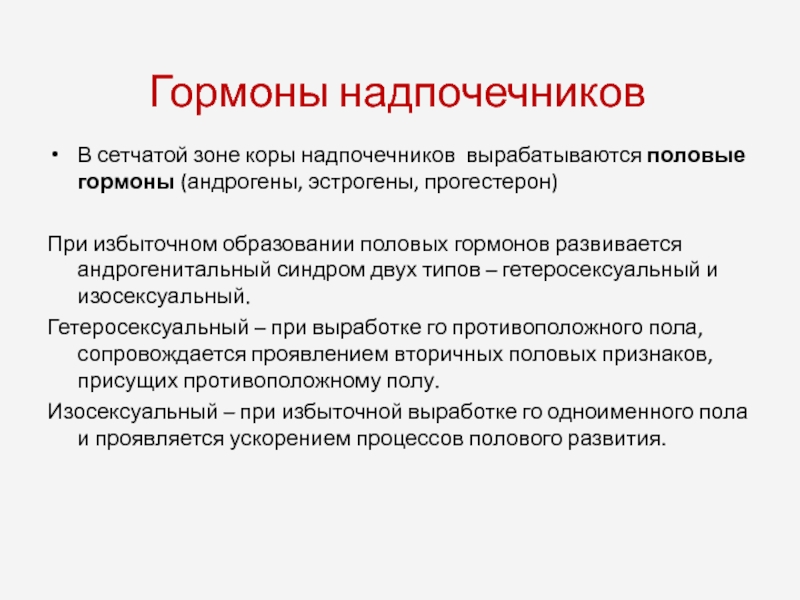 Изосексуальный – при избыточной выработке го одноименного пола и проявляется ускорением процессов полового развития.