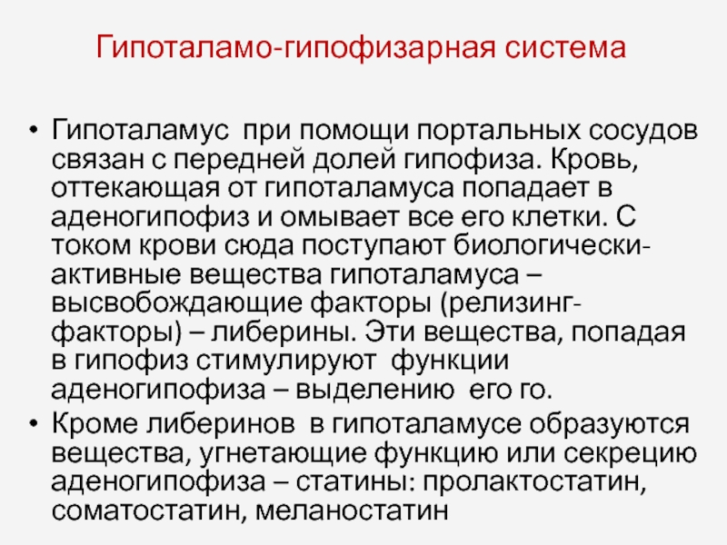 Гормоны гипоталамуса (статины, либерины).