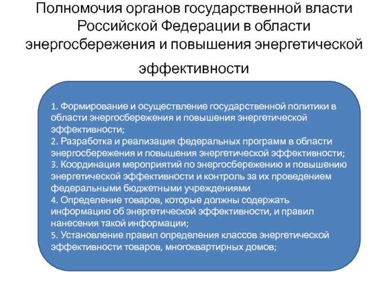 Слайд 9Полномочия органов государственной власти Российской Федерации в области энергосбережения и