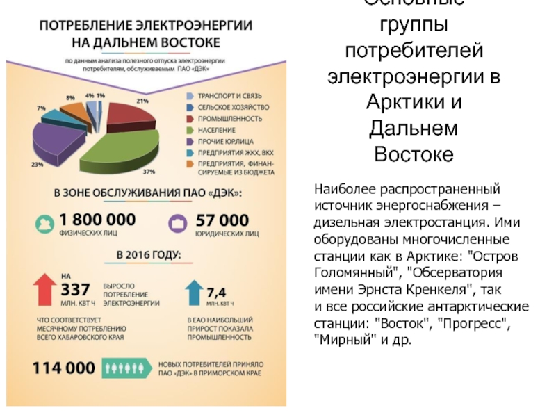 Слайд 4Основные группы потребителей электроэнергии в Арктики и Дальнем Востоке