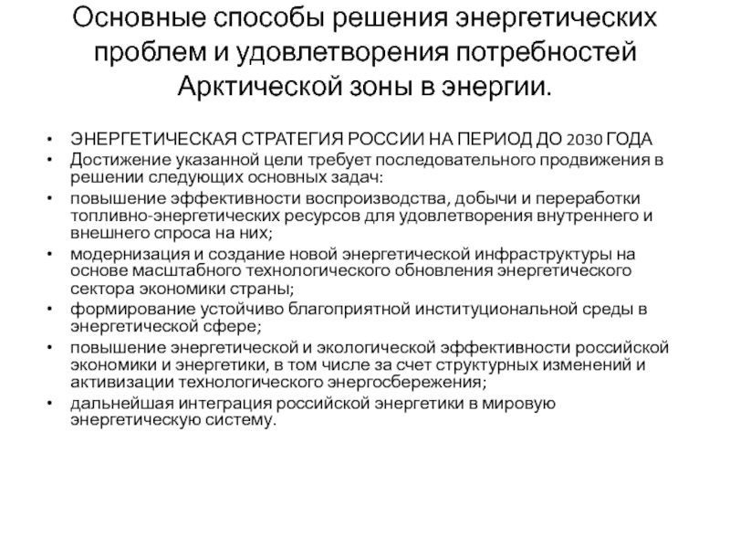 Слайд 15Основные способы решения энергетических проблем и удовлетворения потребностей Арктической зоны