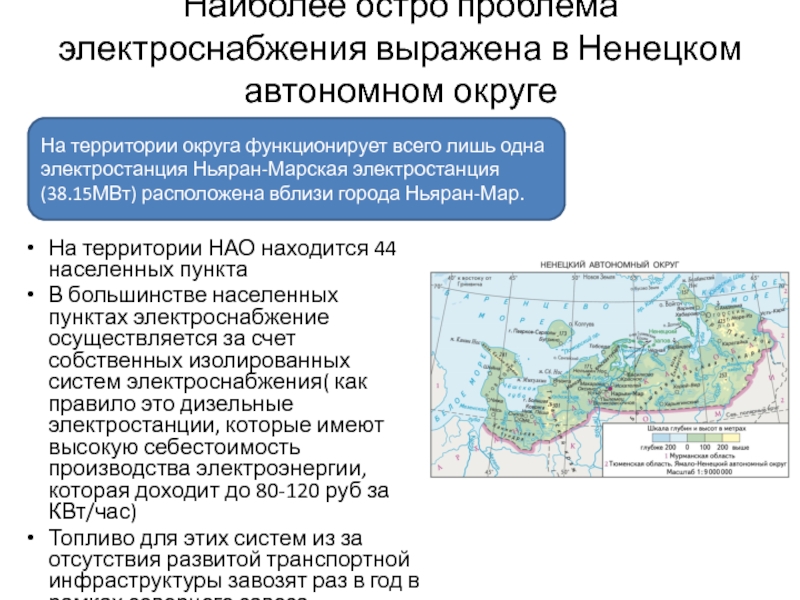 Слайд 6Наиболее остро проблема электроснабжения выражена в Ненецком автономном округе
