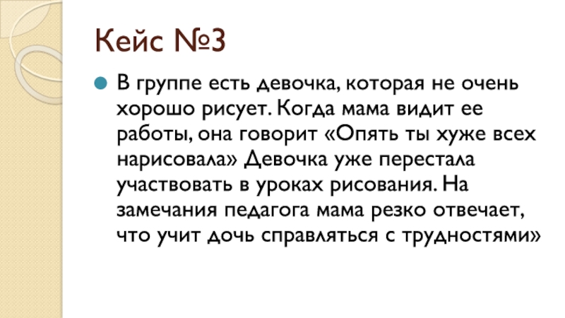 Кейс №3 В группе есть девочка, которая не очень хорошо рисует. Когда мама видит ее работы, она