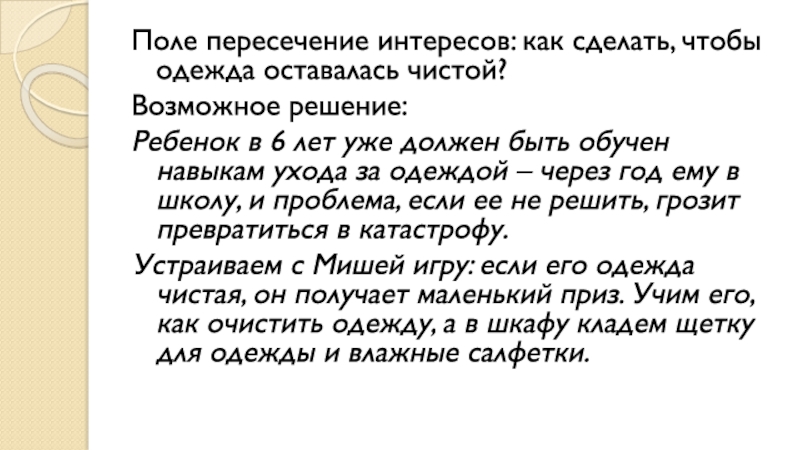Поле пересечение интересов: как сделать, чтобы одежда оставалась чистой? Возможное решение: Ребенок в 6 лет уже должен