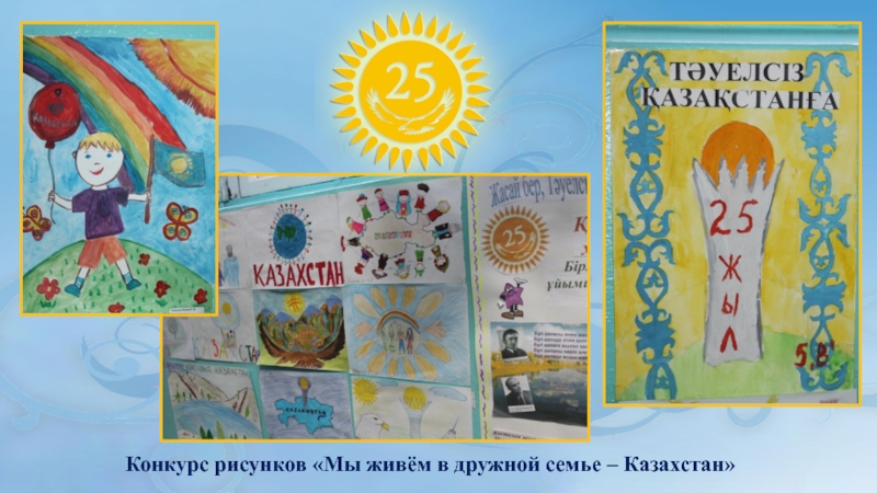 Слайд 12Конкурс рисунков «Мы живём в дружной семье – Казахстан»