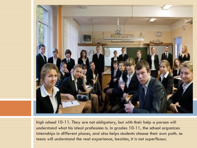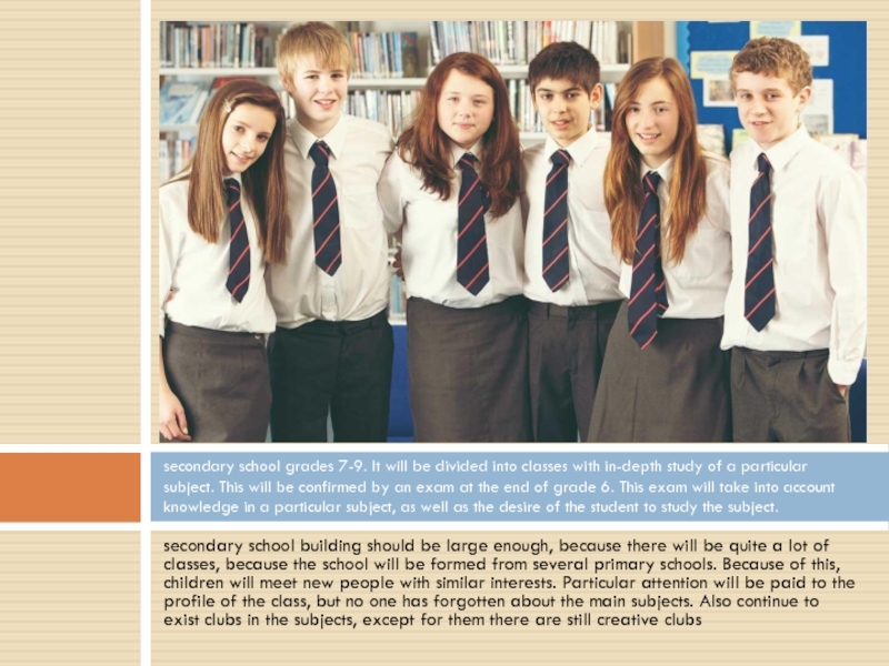 secondary school grades 7-9. It will be divided into classes with in-depth study of a particular subject. This will be confirmed by an exam at the end of grade 6. This exam will take into account knowledge in a particular subject, as well as the desire of the student to study the subject.