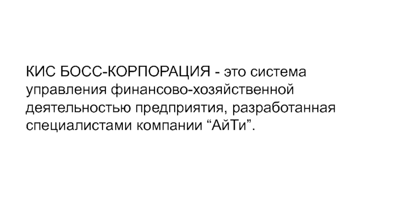 Слайд 3КИС БОСС-КОРПОРАЦИЯ - это система управления финансово-хозяйственной деятельностью предприятия, разработанная
