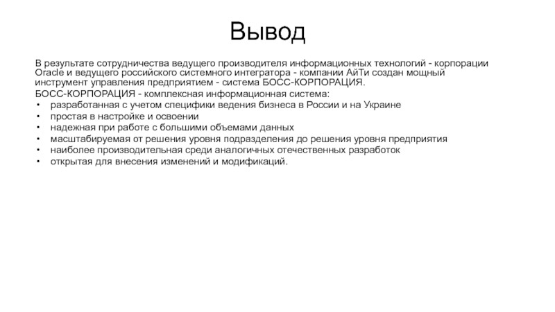 БОСС-КОРПОРАЦИЯ - комплексная информационная система: