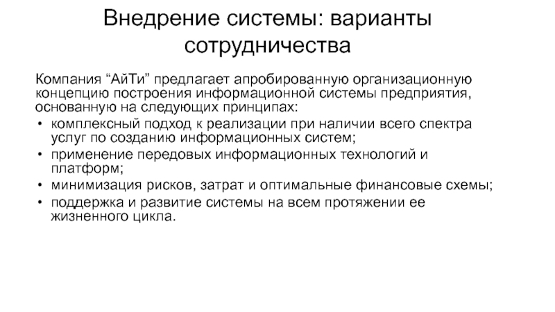 Компания “АйТи” предлагает апробированную организационную концепцию построения