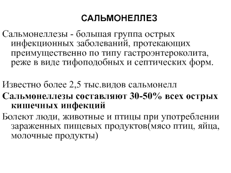 Сальмонеллезы составляют 30-50% всех острых кишечных инфекций