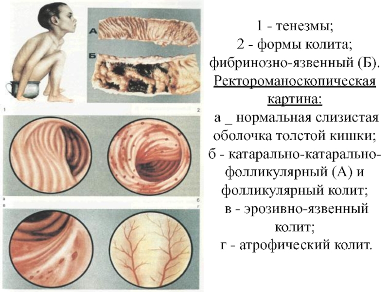 фибринозно-язвенный (Б). Ректороманоскопическая