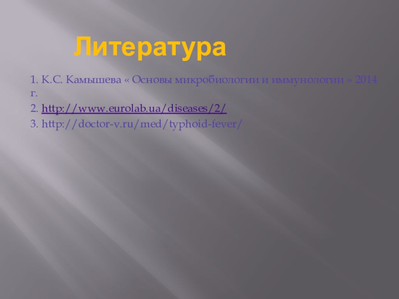 1. К.С. Камышева « Основы микробиологии и иммунологии » 2014