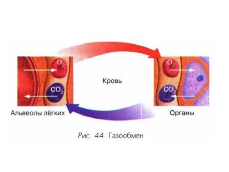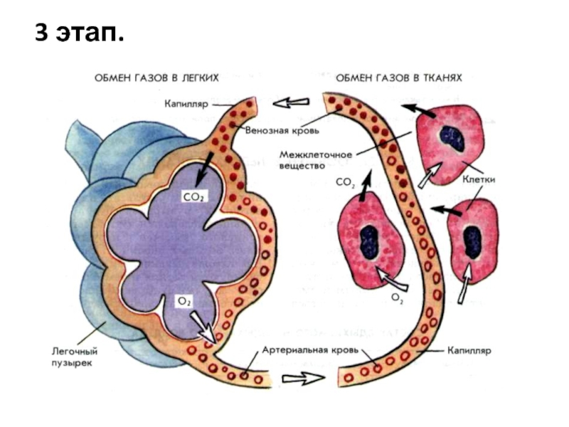 2) Газообмен между легкими и кровью. Газообмен происходит в альвеолах;