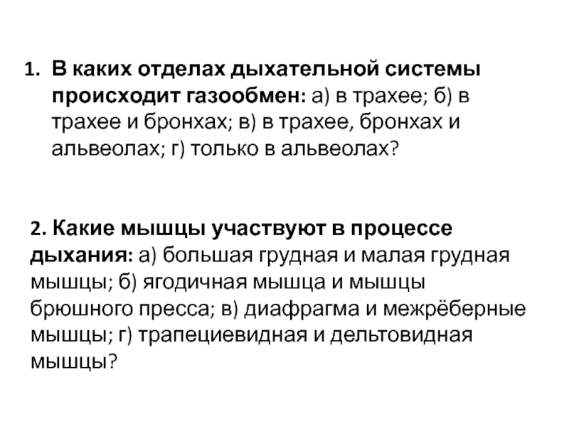 Слайд 63В каких отделах дыхательной системы происходит газообмен: а) в трахее;