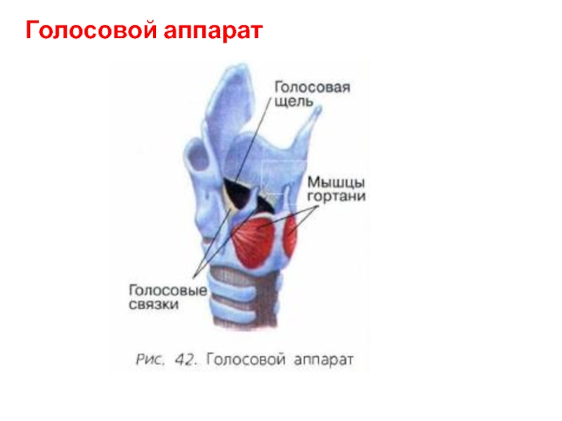 Слайд 45Голосовой аппарат (голосовые связки) – из соединительной ткани.