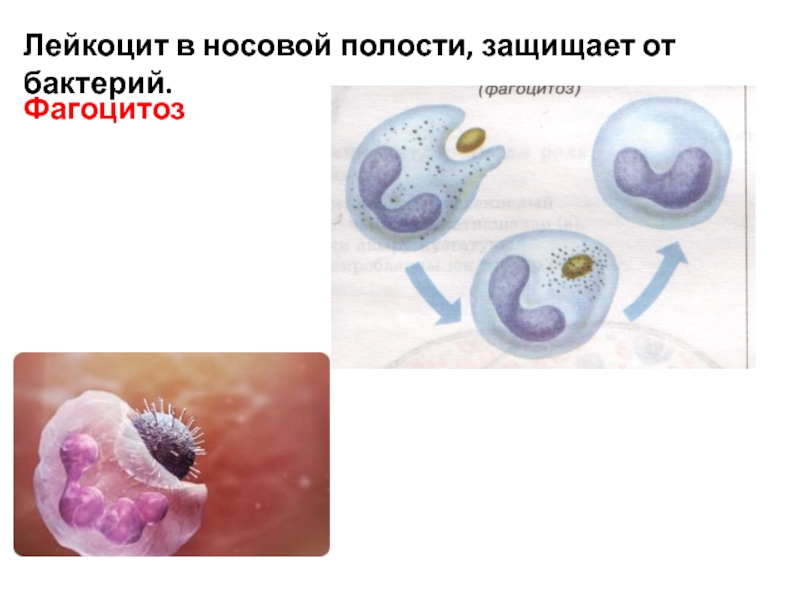 Слайд 42Лейкоцит в носовой полости, защищает от бактерий.
