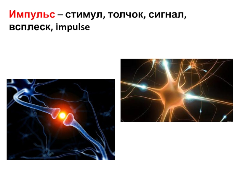 Слайд 19Импульс – стимул, толчок, сигнал, всплеск, impulse
