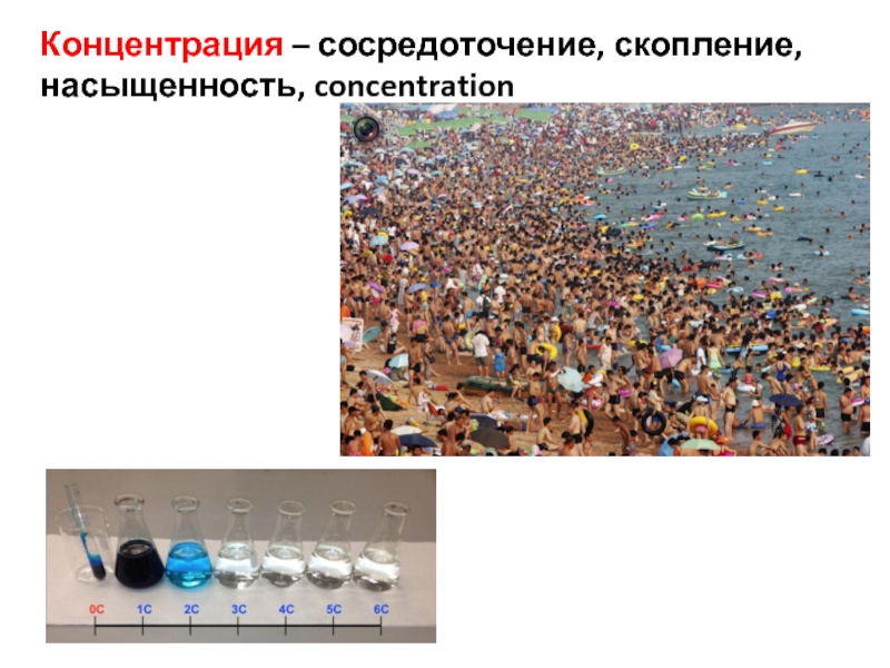 Слайд 20Концентрация – сосредоточение, скопление, насыщенность, concentration