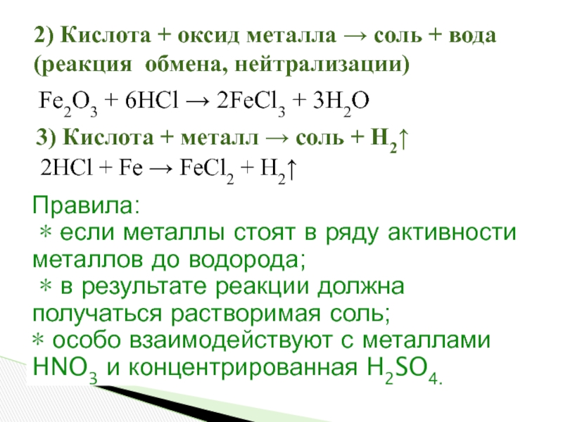 ∗ особо взаимодействуют с металлами HNO3 и концентрированная H2SO4.