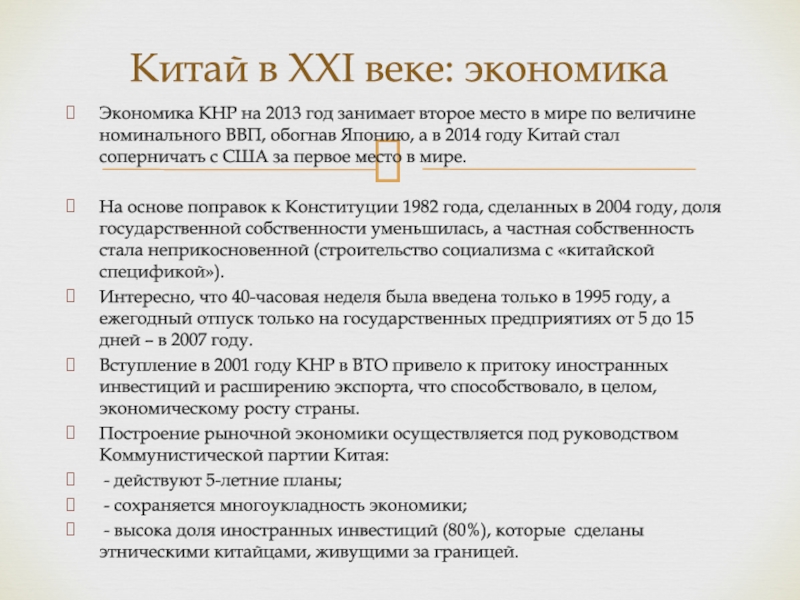 Китай с начала ХХI века является мировой индустриальной сверхдержавой по объёмам промышленного производства, а также космической и ядерной державой: