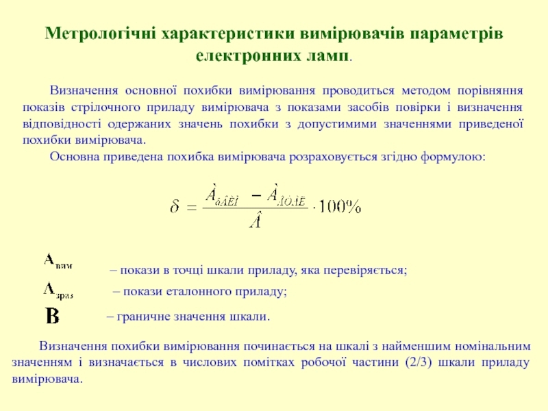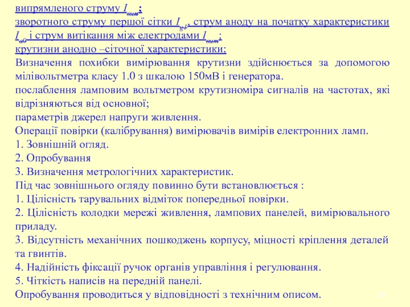 Слайд 33Метрологічні характеристики вимірювачів параметрів електронних ламп.