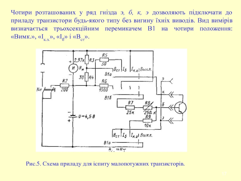 Рис.5. Схема приладу для іспиту малопотужних транзисторів.