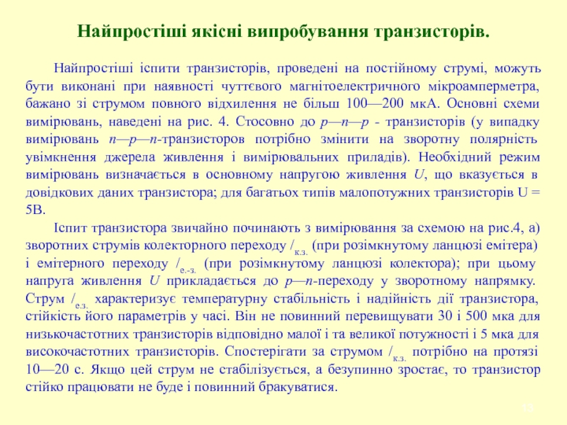 Слайд 13Найпростіші якісні випробування транзисторів.