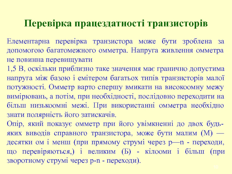 Слайд 10Перевірка працездатності транзисторів
