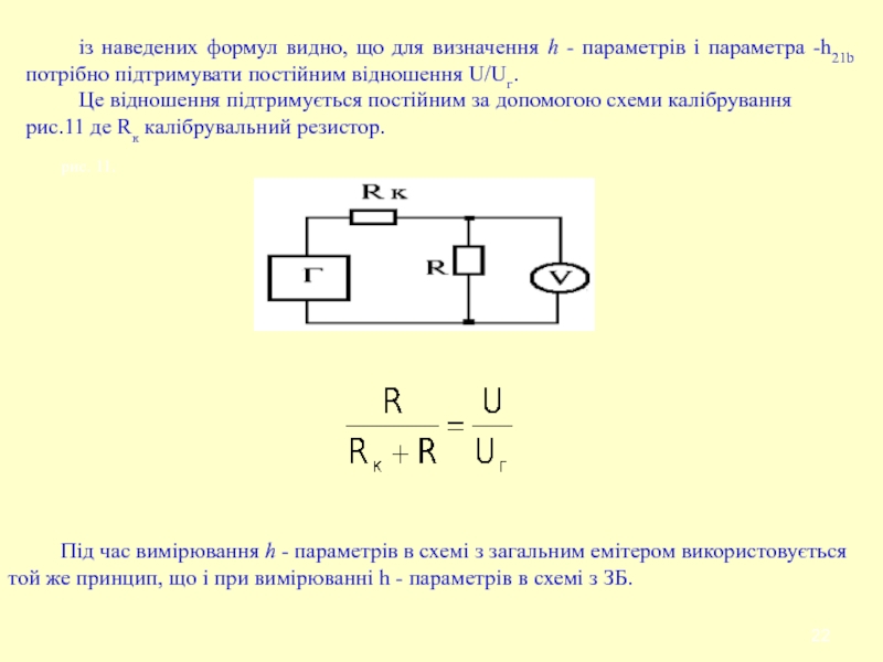 Слайд 22із наведених формул видно, що для визначення h - параметрів