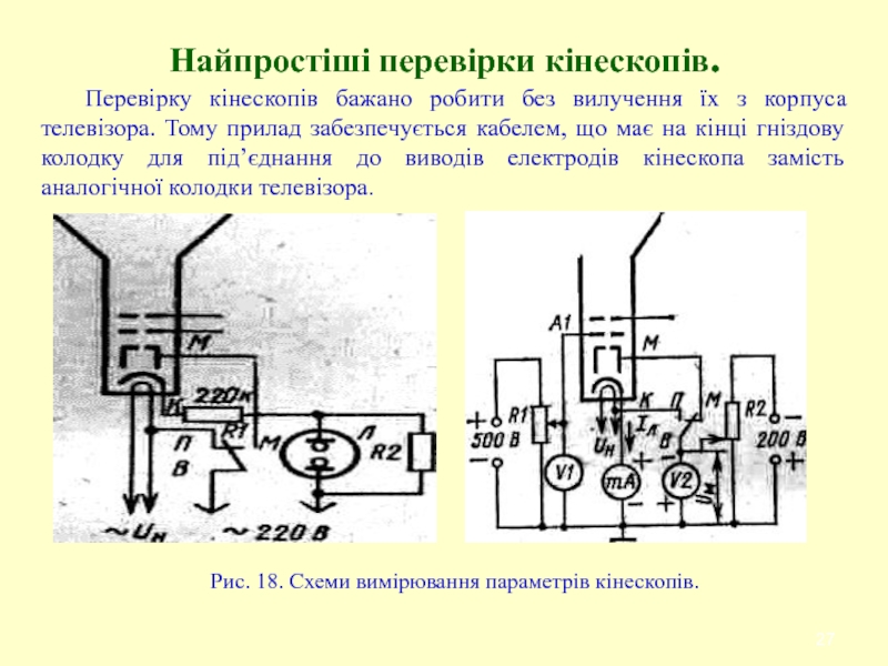 Слайд 27Найпростіші перевірки кінескопів.