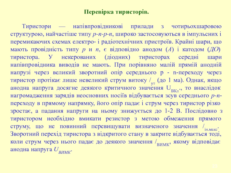 Слайд 23Перевірка тиристорів.