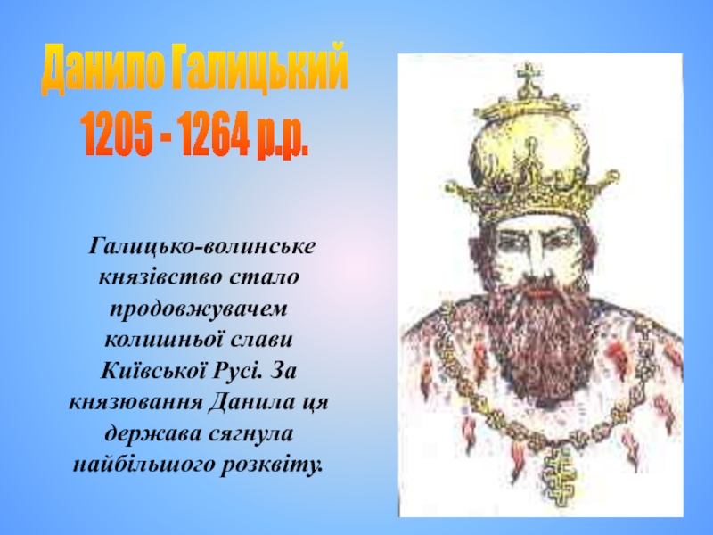 Слайд 13 Галицько-волинське князівство стало продовжувачем колишньої слави Київської Русі. За