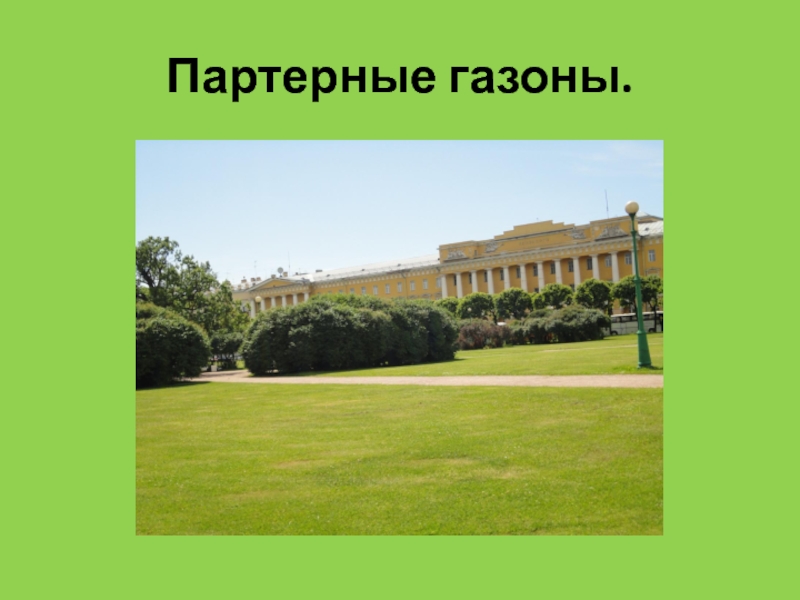 Слайд 4Партерные газоны.