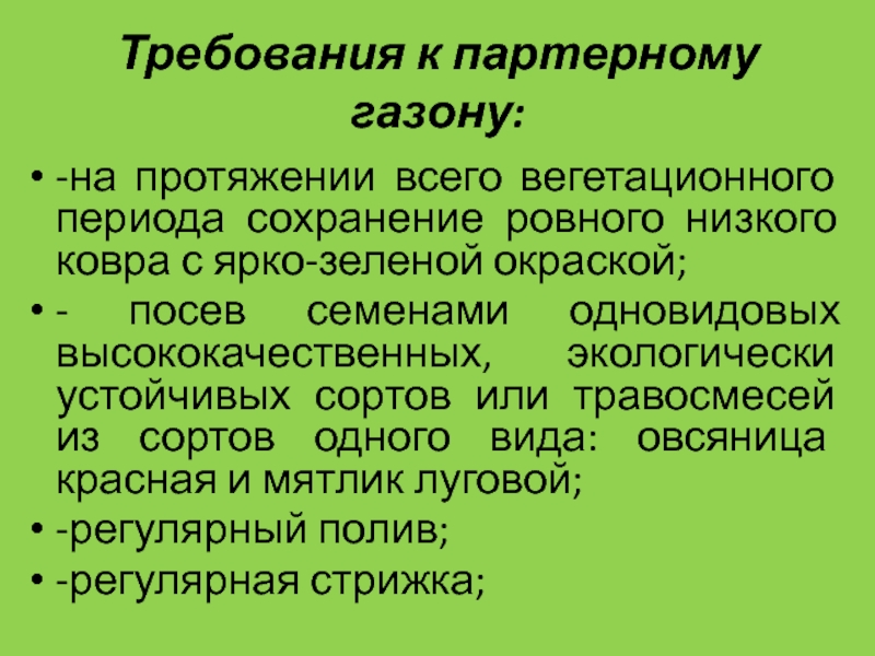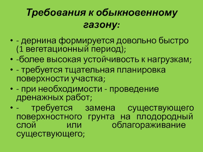 Слайд 28Требования к обыкновенному газону: