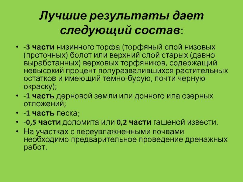 -3 части низинного торфа (торфяный слой