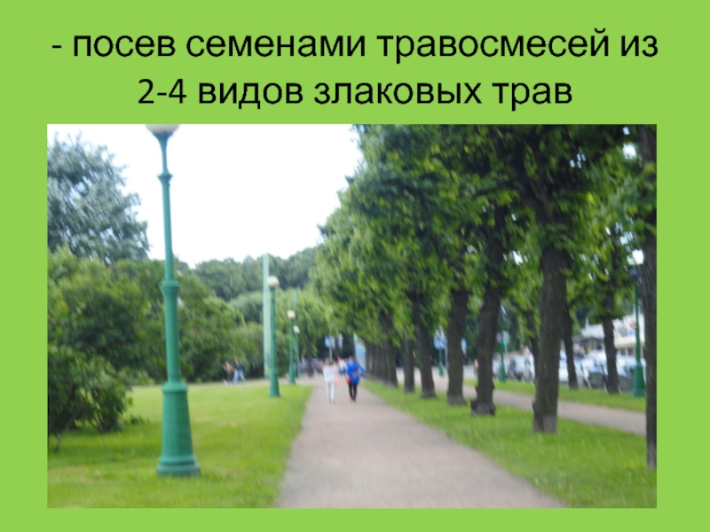 Слайд 31- посев семенами травосмесей из 2-4 видов злаковых трав