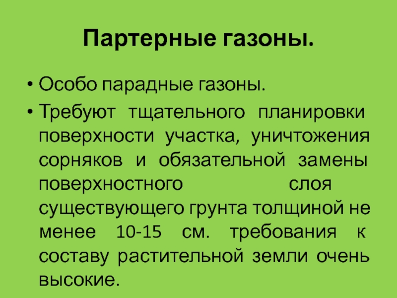 Слайд 12Требования к партерному газону: