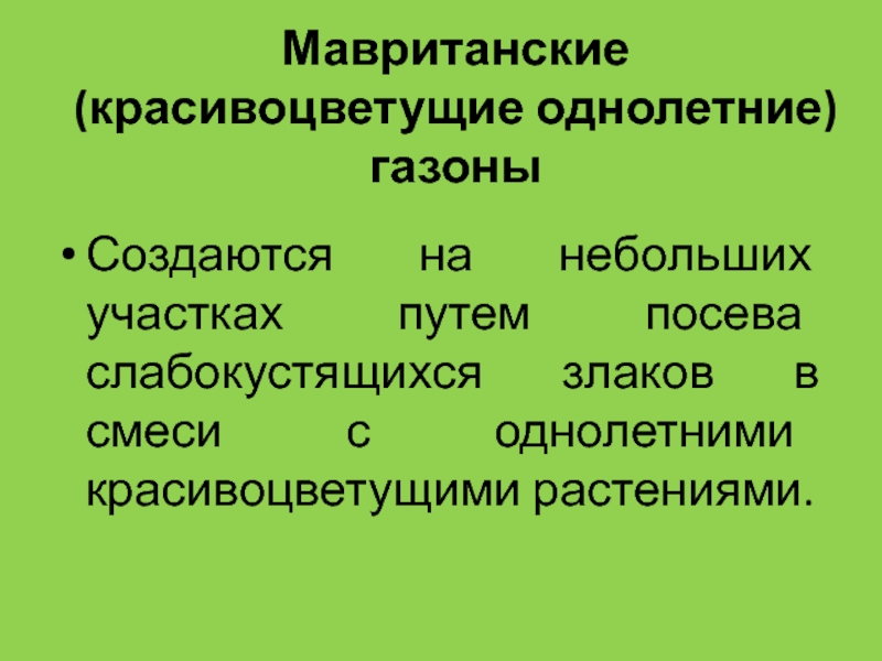 Слайд 40Мавританские (красивоцветущие однолетние) газоны
