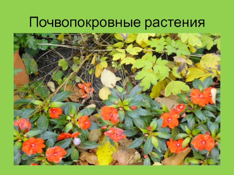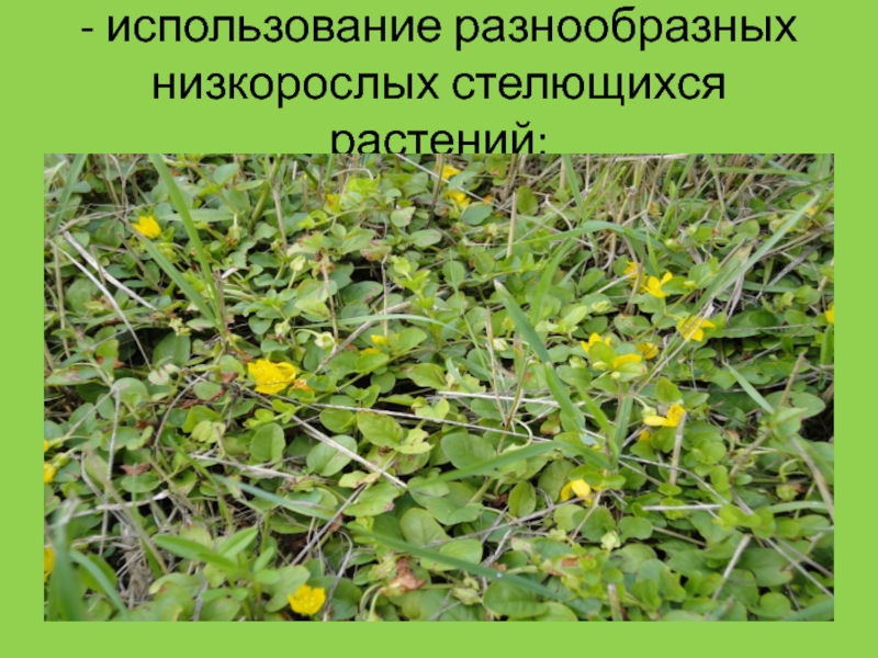 Слайд 58- использование разнообразных низкорослых стелющихся растений;