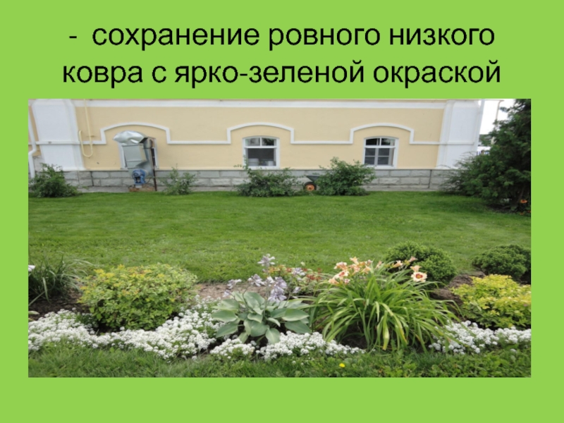 Слайд 10- сохранение ровного низкого ковра с ярко-зеленой окраской