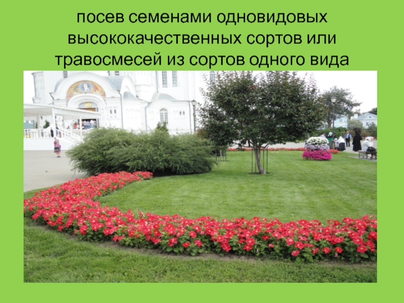 Слайд 11посев семенами одновидовых высококачественных сортов или травосмесей из сортов одного