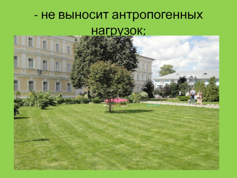 Слайд 13- не выносит антропогенных нагрузок;