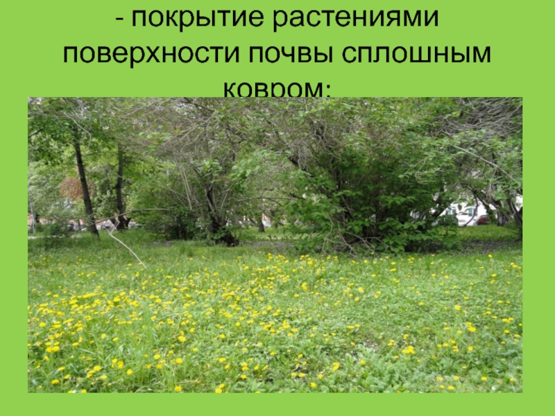 -покрытие растениями поверхности почвы сплошным ковром;