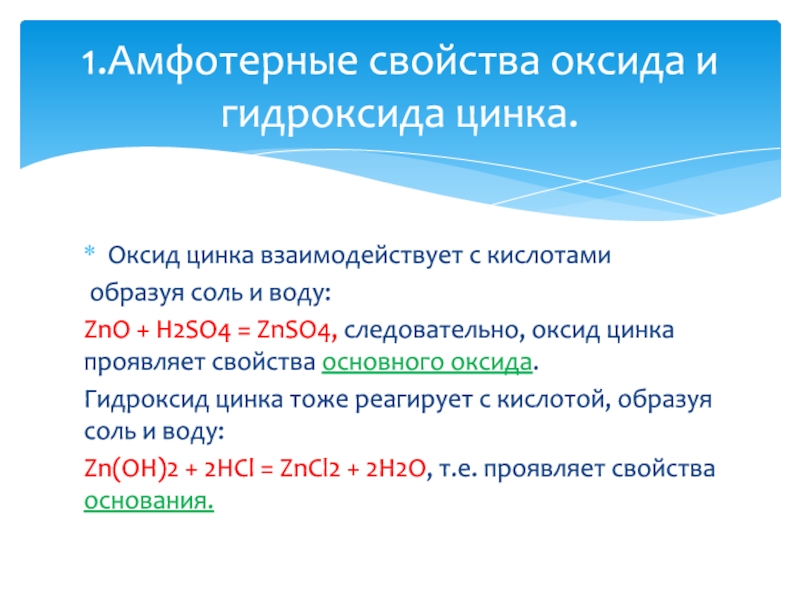 1.Амфотерные свойства оксида и гидроксида цинка.