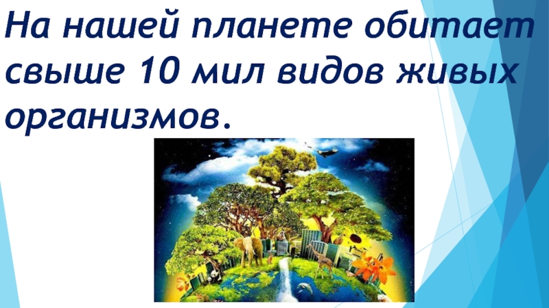 Слайд 2На нашей планете обитает свыше 10 мил видов живых организмов.